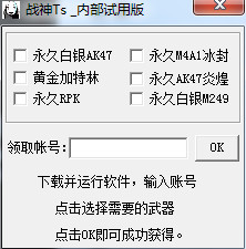 1.下载好本辅助,输入游戏账号点击需要的武器,点击OK即可刷枪.
