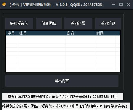 兮兮vip账号获取神器是一款能够为用户提供爱奇艺、优酷、迅雷、乐视等视频网站会员账号的工具。有需要的可以来此下载!