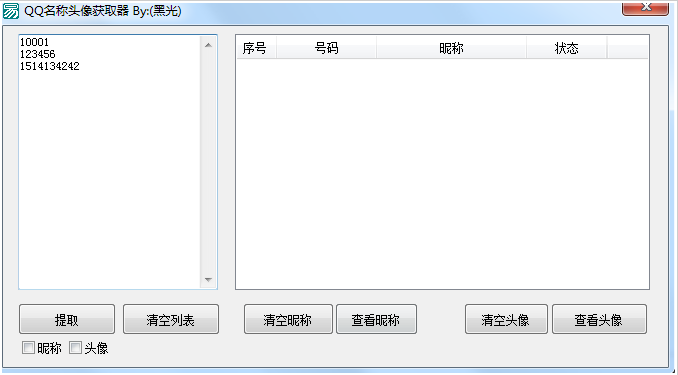 黑光QQ名称头像获取器是一款不仅能单一查询qq名称头像,还能够批量查询的工具。有需要的可以来此下载!