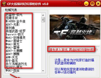 这是一款非常给力的CF游戏礼包在线领取工具,可以帮助玩家快速领取最新的各种cf活动福利,及时掌握最新的CF穿越火线活动,让您更加轻松的体验游戏。