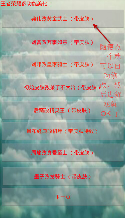 3、点击一键换肤功能,如果提示需要收费,你就充钱吧,当然我们不会允许这种情况发生