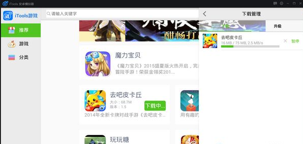 3、itools安卓模拟器内置游戏大厅,支持下载管理,让你轻松游戏。