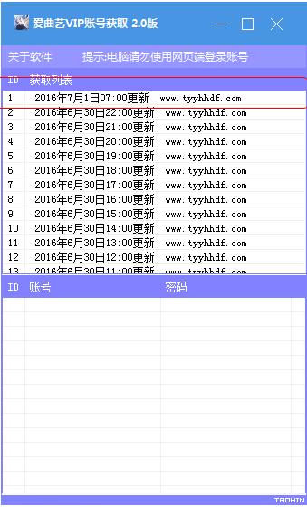 1.下载并运行软件,根据最新的更新时间,点击获取账号.