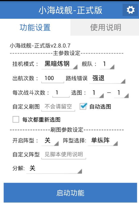 3、打开脚本设置需要进行的功能.进行勾选,勾选后点击启动功能,点击启动功能后,脚本设置界面会消失变成小精灵图标,一般会在手机或者模拟器的右上边隐藏.