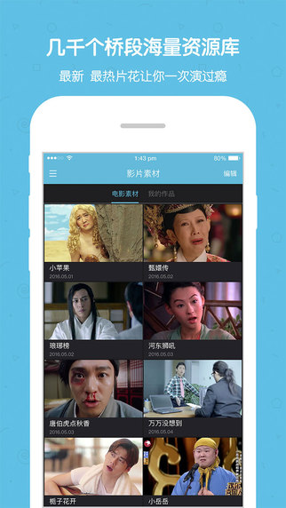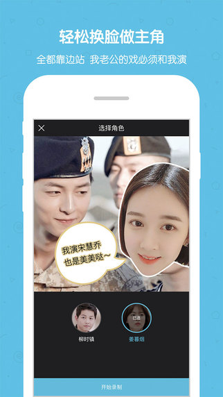 选中喜欢的视频片段,录制台词与明星换脸,毫不违和的代入感,其实你比明星更有演技。