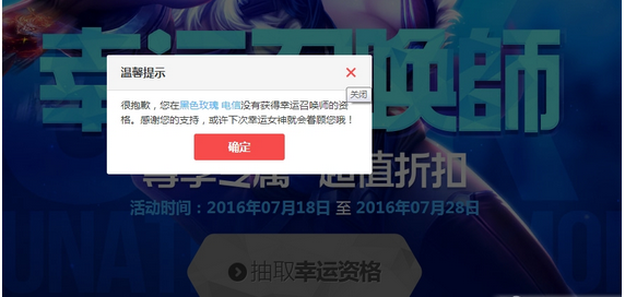 2请点击页面上“抽取幸运资格”来试试手气,抽出幸运召唤师资格;