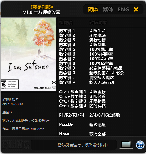 我是刹那十八项修改器是我是刹那pc游戏的修改工具,该工具可以帮助玩家在游戏中修改无限生命、无限魔法、100%暴击率、清空敌人魔法、敌人无法行动等十八项功能,欢迎有需要的朋友下载!