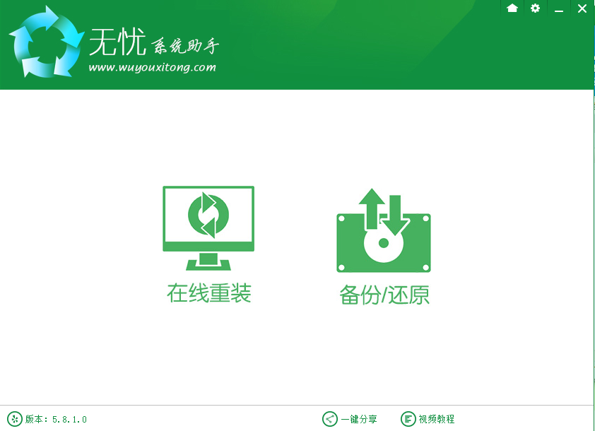 无忧系统助手提供在线重装功能,也提供备份/还原功能。如果你本地没有系统镜像可以点击“在线重装”,软件会为你在线提供WinXP、Win7 32位、Win7 64位、Win832位、Win864位、Win10 32位、Win10 64位系统,方便用户使用。如果你本地有系统镜像GHO,可以通过本软件的“备份/还原”功能进行安装操作,详细看“备份/还原”操作。