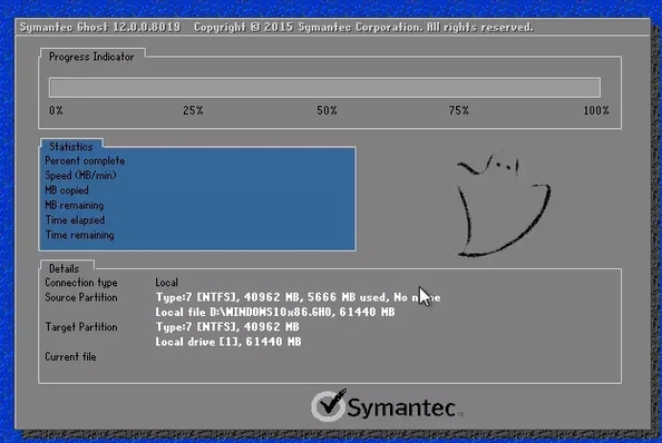 电脑重启后,电脑将自动进行安装。下图即为系统自动安装过程;