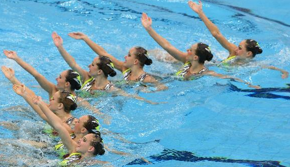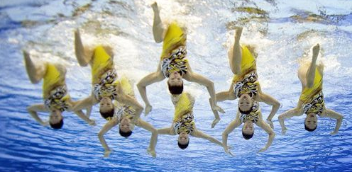 花样游泳是一项具有艺术性的优雅的体育运动,它也需要力量和技巧,需要许多年不断的训练来掌握。有十个裁判关注她们的每一个动作,运动员必须作出许多组推举、旋转、弯曲,所有这些动作都不能借助于池底的地面。