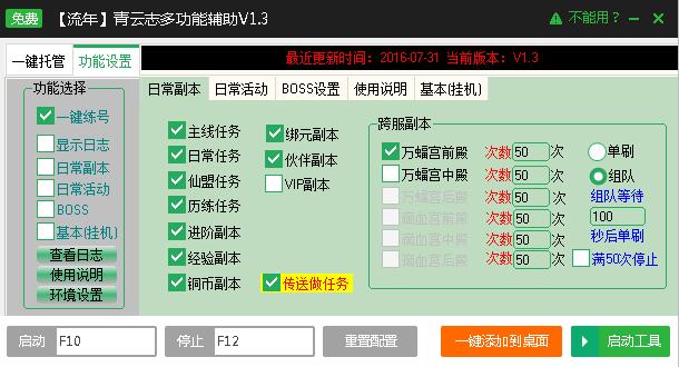 可自动完成《青云志》页游任务,自动挂机升级、自动日常副本活动等功能体验解放双手轻松游戏。