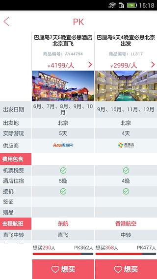 - 直观的产品比较,迅速发现产品差异,找到合适的出境游产品