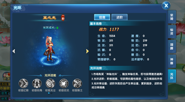 购买之后使用神秘光环,就可以看到右边任务多了神秘光环的任务,在做完对应的任务之后,就可以获得光环了。在骑宠-光环里,可以看到光环。