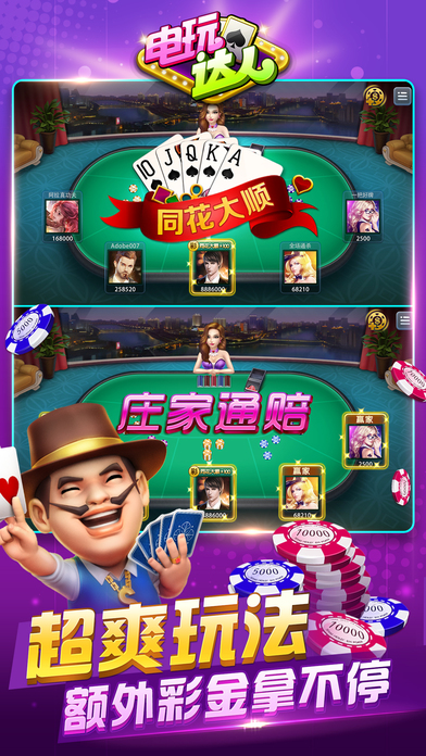 电玩达人iOS版是一款苹果棋牌游戏,电玩达人iOS版融合了街机斗地主、百人斗牛、奖金大亨等多款游戏的玩法,让玩家体验不一样的棋牌,精美的游戏画面,特色的游戏玩法等你来体验!