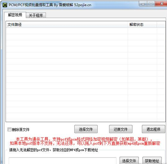 工具均由易语言编写,如有误报,通杀网络格式为pcf或pcm的加密视频,比如*都,*图,*顿,财萃网,建筑课堂,火星网校等至于如何获得pcf或pcm地址,请自行研究。