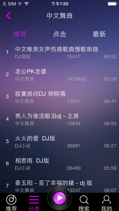 九酷DJ苹果版是一款手机音乐播放软件,最新单曲,热门歌曲,慢摇,DJ,电音,串烧应有尽有,集合新歌老歌,让用户随时随地想听就听,喜欢听歌的用户可以下载。