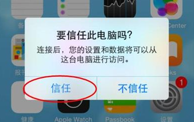 第二步:打开iTunes工具软件,把iphone手机或ipad连接电脑,手机上有提示请点“信任”。