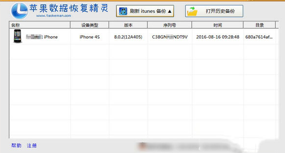 第四步:打开淘晶苹果数据恢复精灵,可以简单的查看、恢复、导出相关数据。