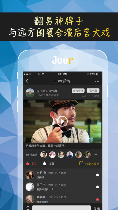 角儿app为大家提供一个休闲娱乐的平台,也提供了一个展示自我的平台。