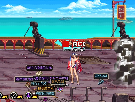 为了玩家更好的搬砖,死亡之塔门口有卖免费粉装备帝国套,不可强化。