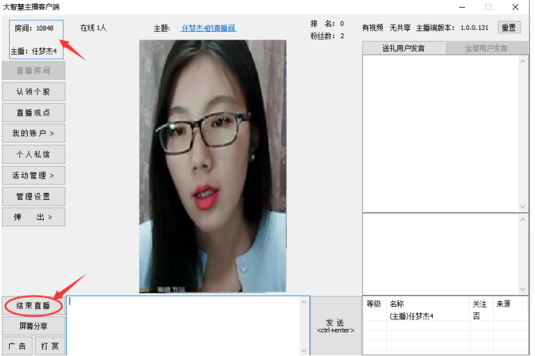 主播要解散房间,点击结束直播,以往解散房间也就退出主播端软件,现结束直播,主播还可以在主播端看看用户发的私信,看看自己一天的收入情况。
