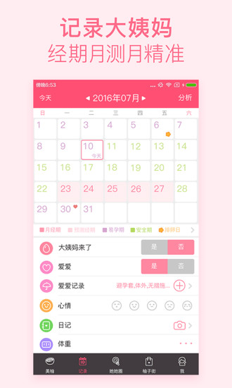 【记录大姨妈月经期】只要简单记录大姨妈月经期日期,自动推算大姨妈月经期、排卵期以及减肥美容丰胸时间。