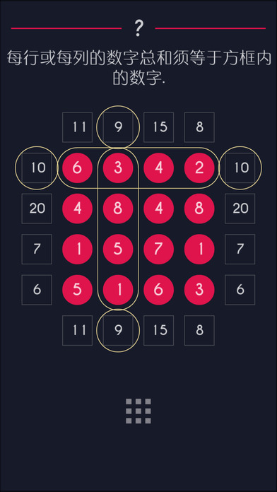 Rullo是一款非常有趣的数学益智类手机游戏,其游戏界面简单,游戏中玩家的需要将方阵里的每行和每列的数字之和拼凑等于方框内的数字,玩家需要通过点击将一些数字移除,来通过考验,欢迎喜欢数字游戏在朋友下载体验!