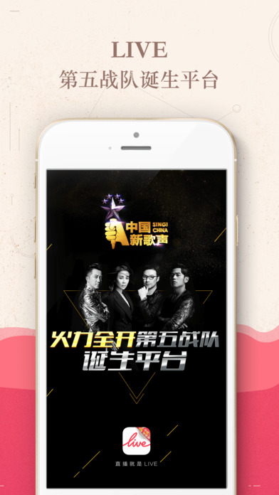 live直播是中国新歌声独家手机直播平台,该平台为广大用户提供中国新歌声live战队的最新动态,出色的直播应用为用户呈现最出色的直播互动模式,欢迎有需要的朋友前来天空下载!