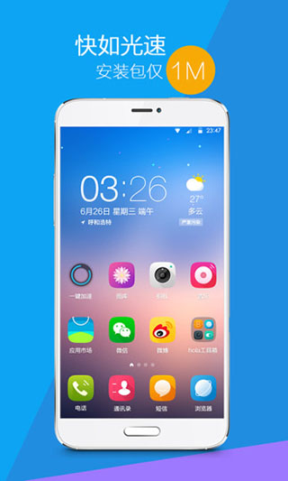 - 【拒绝肥胖臃肿】,让你的手机瘦成一道闪电!Hola用最少的手机内存,带来最流畅的酷炫体验!