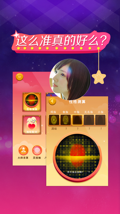 全球最热门的指纹测算应用,简单快捷又准确,可以快速检测你的指纹状况,为你分析性格、感情,还可以检测出你的另一半。