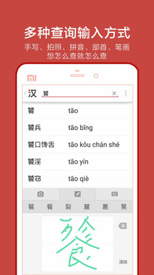 3. 支持多种查字模式,拼音检字、部首检字、笔画检字帮你认识所有的生僻字,还可以拍照查词和手写输入!