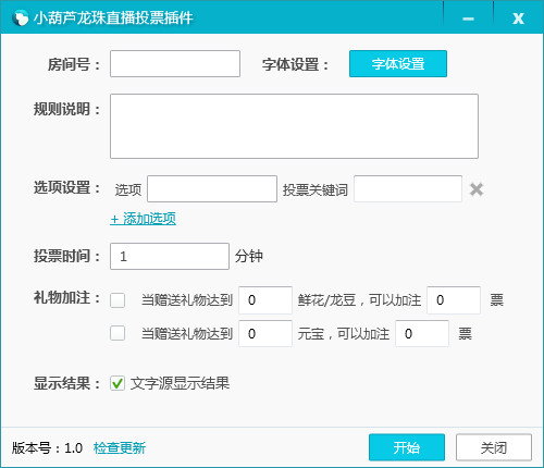 2、如启用某一类,就将勾选框 打勾√,并输入对应的“免费礼物值”或是“付费礼物值”所可以加注的“票数”即可。设置好参数后,点击“开始”按钮,即可开始投票。