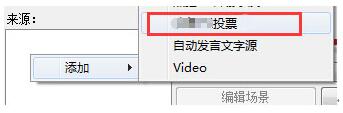1、安装好插件后,启动OBS,然后在OBS主界面的【来源】列表窗口里面点击鼠标的右键,然后点击弹出来的【添加】,再选择点击【某直播平台投票】来添加这个源。