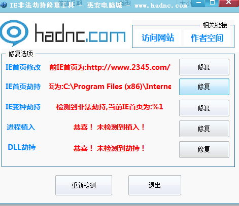 检测完毕,根据所需进行修复,修复完毕即可搞定劫持