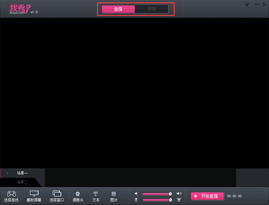 直播助手主页面有2个大功能:直播和录制。各位主播可以根据不同需要进行选择。