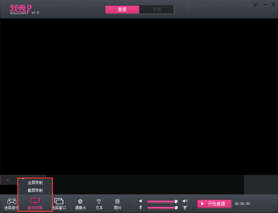 2)截屏录制:截取录制,便是截屏的意思,你可以在屏幕中选取任意区域进行直播,选取什么内容,直播间便播出什么内容。