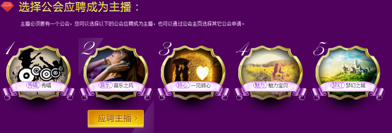 2、点击要加入的公会,进入该公会首页,鼠标移到右上方的“申请签约”,点击“应聘主播”