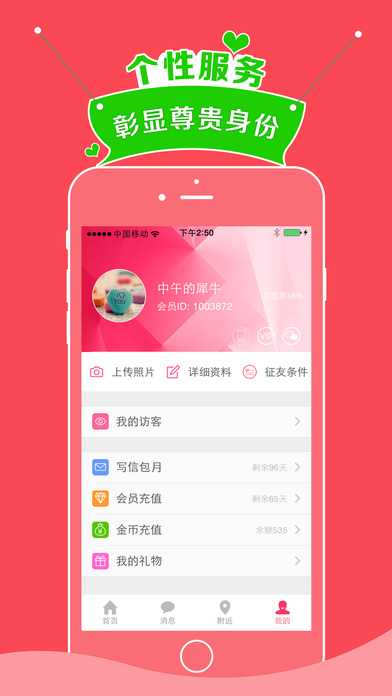 我的主页---提供个性化定制服务,点亮勋章,彰显你的尊贵身份。人群中,只有你最闪耀。