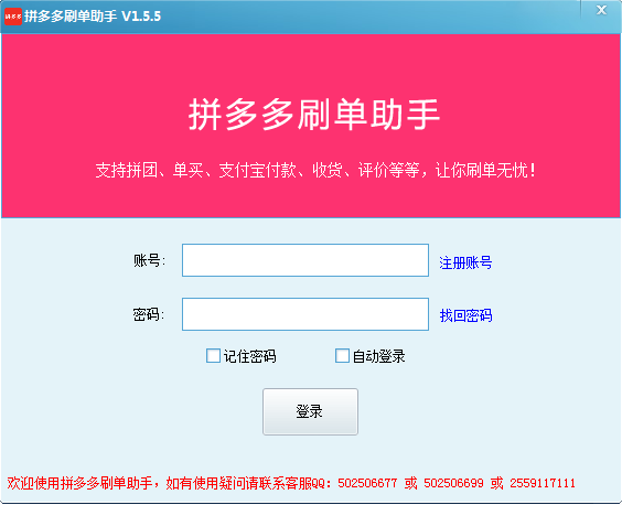 拼多多刷单助手是一款非常实用的网购刷单工具,该软件支持支付宝自动付款,还可以自动收货评价等功能,轻松帮助用户刷单,可参团可单买卖,非常的方便实用,欢迎有需要的朋友前来天空下载使用!