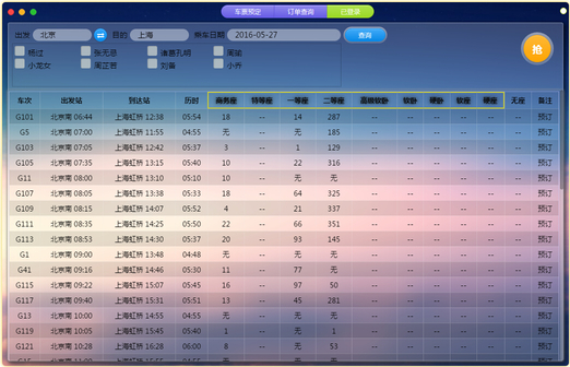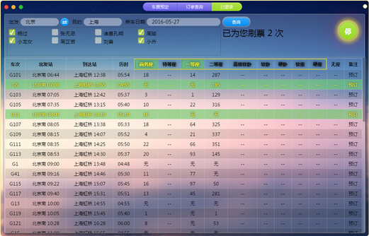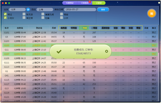 在常用联系人中先选择乘客,然后选择目标车次及席别~