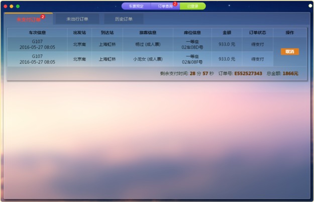 您可以在订单列表中,查询未支付订单、为出行订单以及历史订单