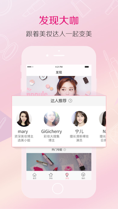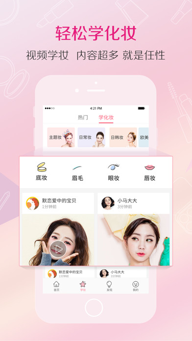 【超火爆的热门教程】: 热门化妆视频推荐,可虚拟试妆;教程同步同款商品,可种草到购物车;在这里和上千万妹子一起交流;