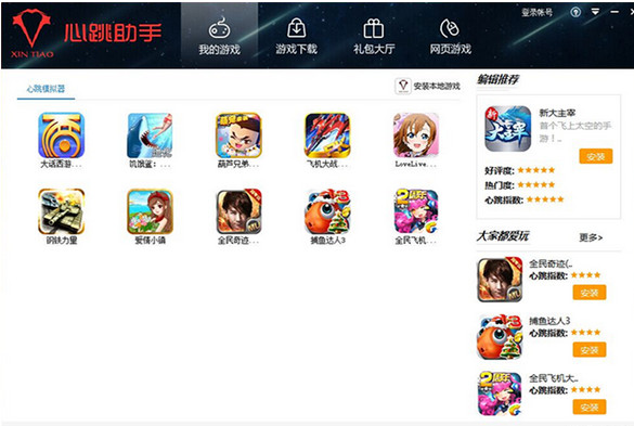 心跳助手的游戏中心目前已经对接了腾讯/久游/360/小米/百度等国内主流手游分发平台,玩家可以在这里找到目前几乎所有国内的安卓平台手机游戏,并提供多种渠道包供玩家选择。无论你是安卓用户还是PC用户,都能在心跳助手上找到你想玩的游戏。