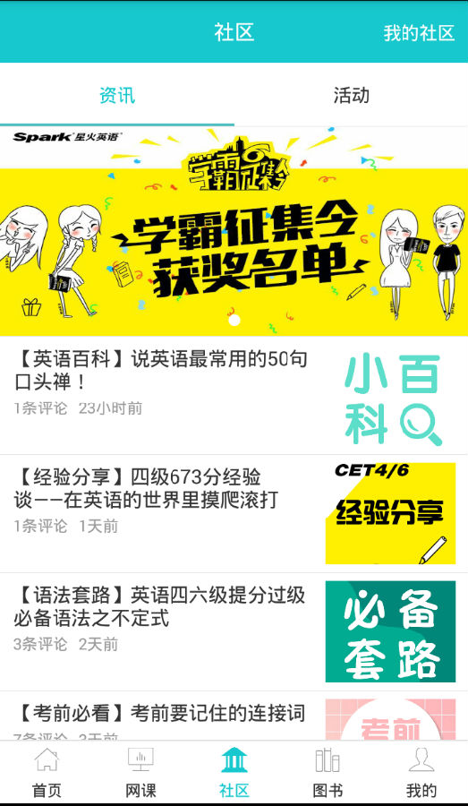 星火英语【社区资讯】提供大学四六级考试资讯以及社区活动。