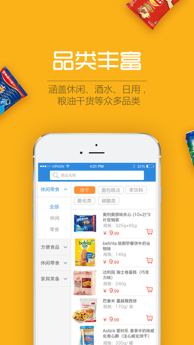 涵盖休闲、酒水、日用、粮油干货等众多品类