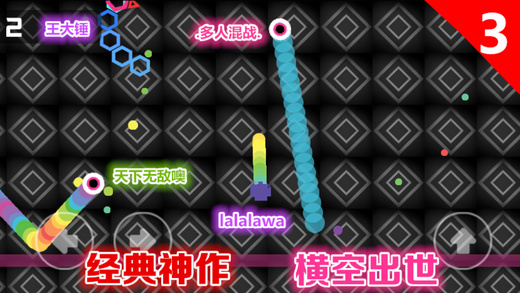 3.长按加速键,用巧妙的走位让蛇身被别人撞上,就可以吃掉他们啦。