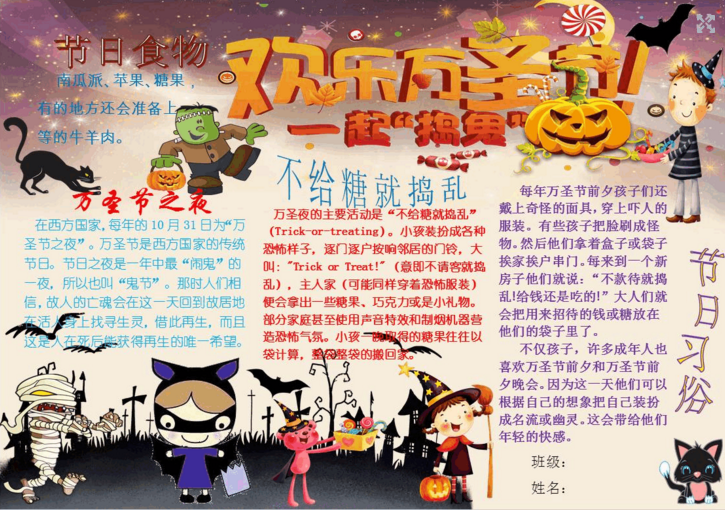 万圣节手抄报图片模板大全最新