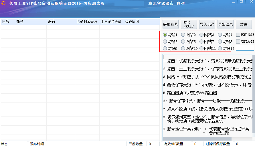 6:账号保存格式:账号----密码----优酷剩余----土豆剩余