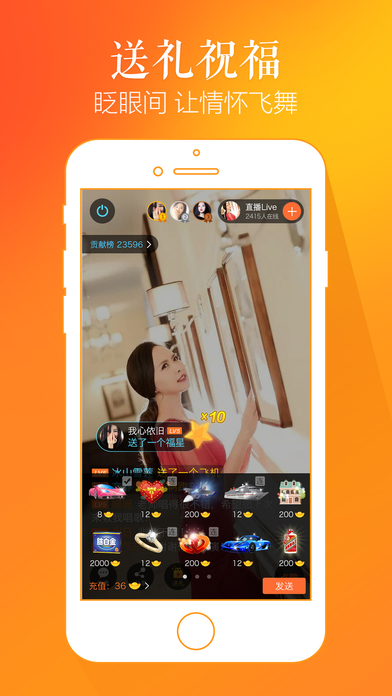 当前版本支持主播登录进行歌舞直播,用户端可直接收看直播内容,并通过文字、表情与主播互动;同时用户可选择点播歌曲;用户可选择充值虚拟礼物,为主播打赏,互动。