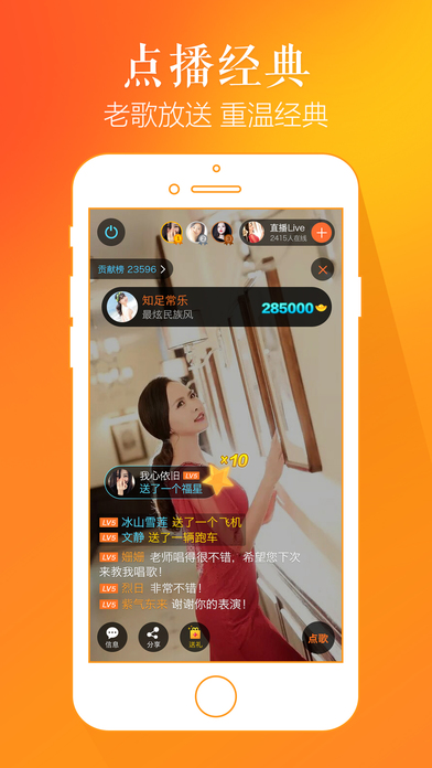 2、经典怀旧金曲、戏曲、红歌、民歌、热舞,在线互动。